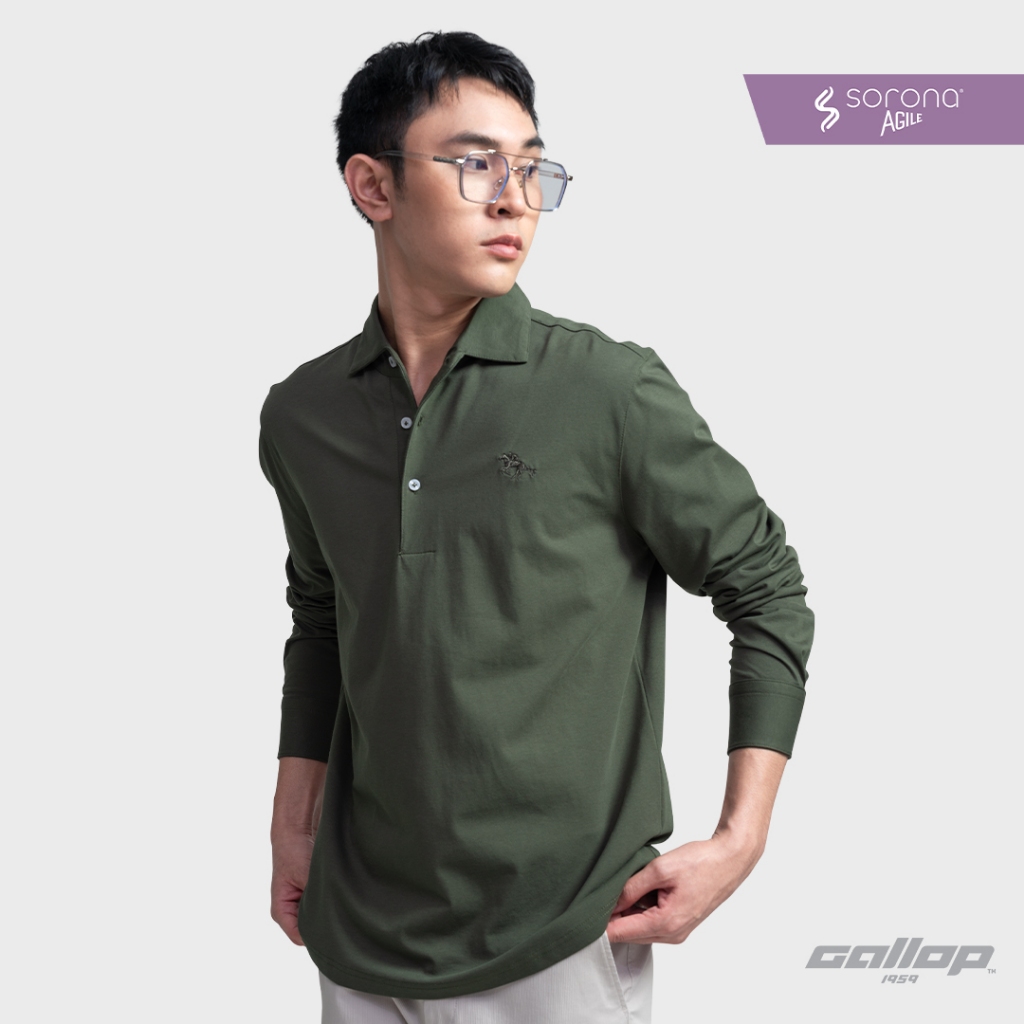 GALLOP : เสื้อโปโลแขนยาวผู้ชาย Eco-Friendly Polo Long Sleeve Shirt (รักษ์โลก) รุ่น GP9069 สี Olive green – เขียวขี้ม้า