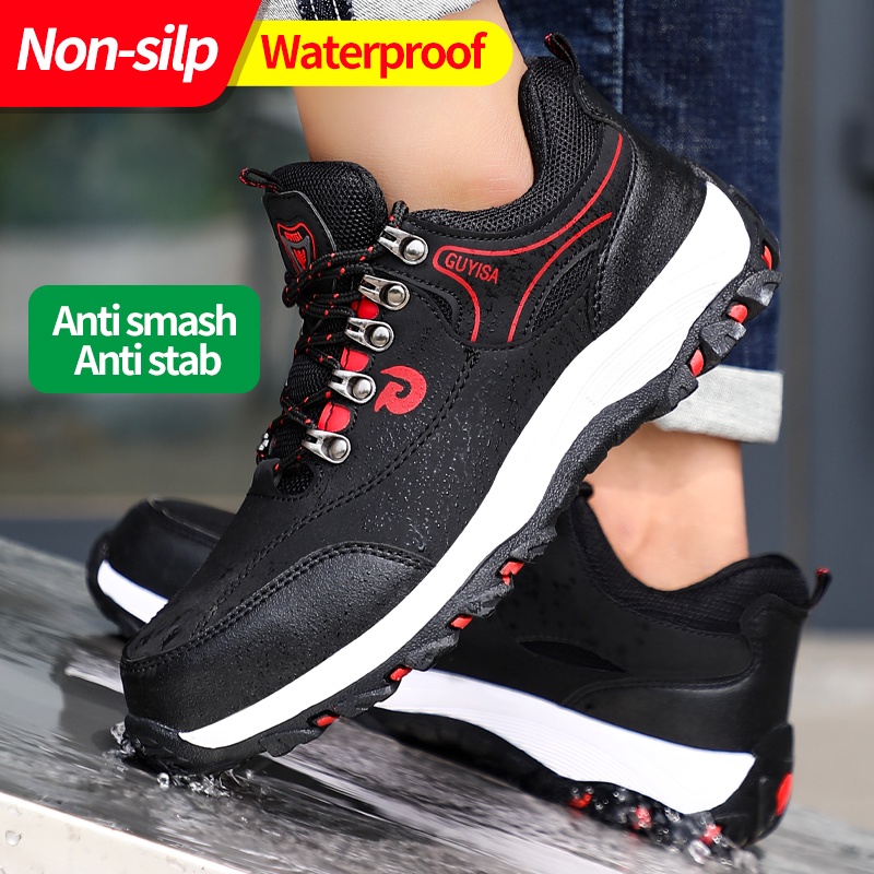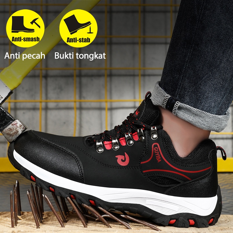 Guyisa รองเท้าเซฟตี้ หัวเหล็ก กันการสึกหรอ กันเจาะ สําหรับผู้ชาย พร้อมส่ง COD