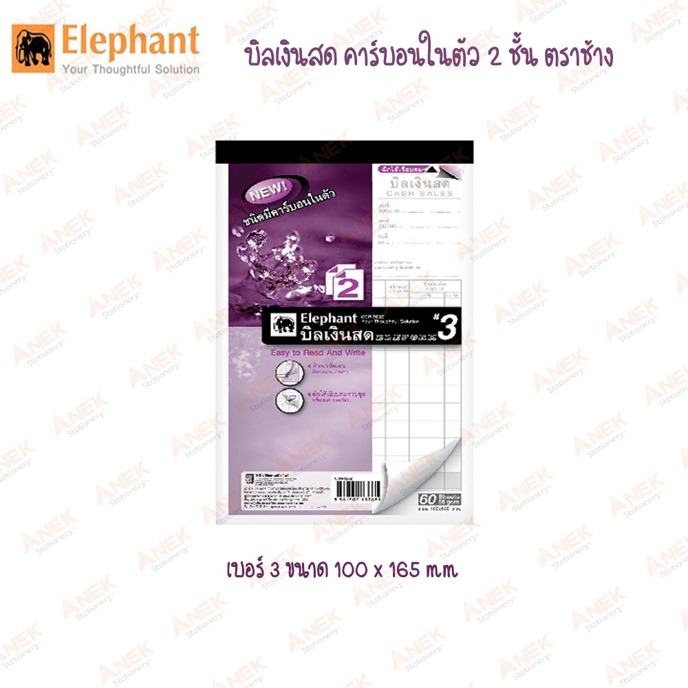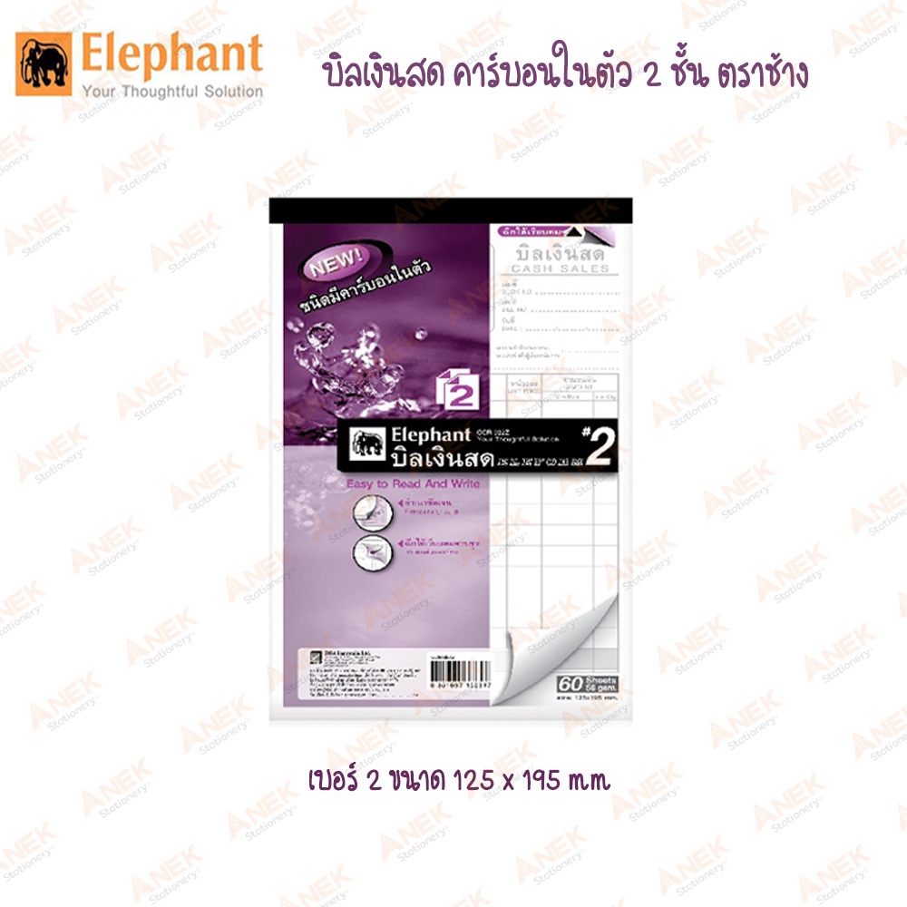 [ยกแพ็ค] Elephant สมุดบิล บิลเงินสด คาร์บอนในตัว 2 ชั้น ตราช้าง (จำนวน 10 เล่ม)