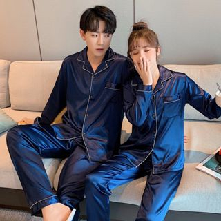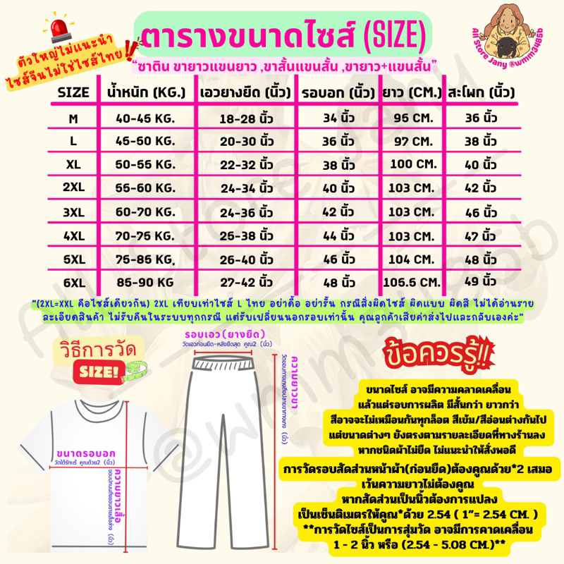 🐰JANY🐰ชุดนอนผ้ซาติน แขนขายาวผู้ใหญ่ ใส่สบาย ไซค์ M-2X ผู้ชายใส่ต้องเผื่อไซค์ ***กระดุมมีฝั่งเดียวคือฝั่งซ้ายค่ะ***