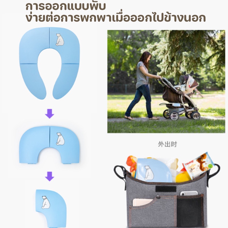COD👶💕 ที่รองนั่งชักโครกเด็ก ชักโครกเด็ก ฝา แบบพกพา แบบพับได้ ที่นั่งโถส้วม มีสามสีให้เลือก