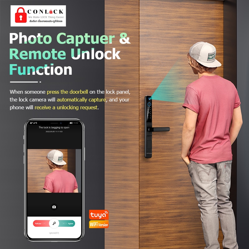 Conlock TUYA กันน้ำ ภายนอก Digital door lock บานเลื่อน บานสวิง ล็อคออโต้ ถ่ายรูปได้ CL-165FB PRO