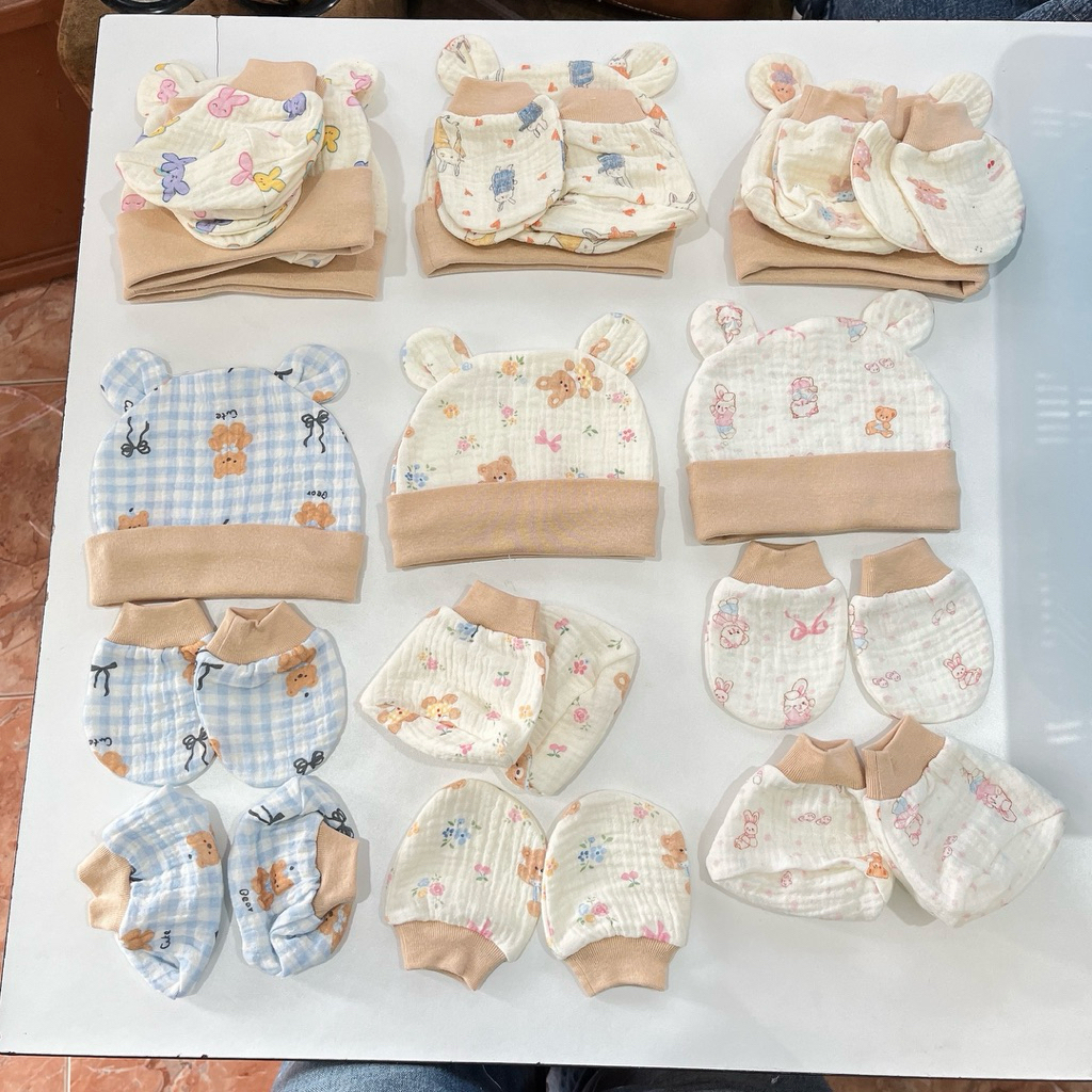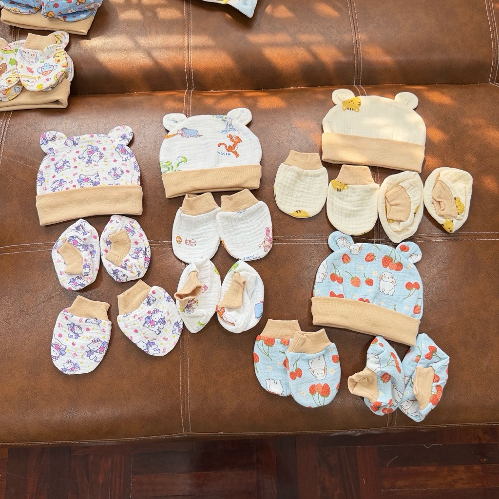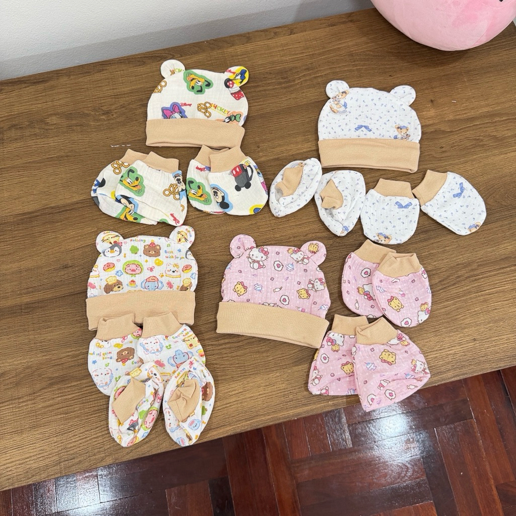 A01เซ็ตหมวก-ถุงมือ-ถุงเท้า3Dพี่หมีน่ารักตัดเย็บในประเทศไทยคนไทยผลิต