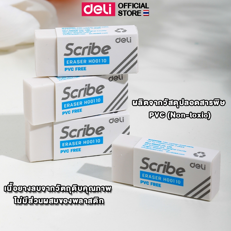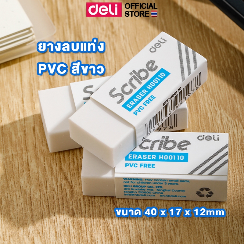 ยางลบดินสอ Deli ยางลบแท่ง ยางลบ PVC สีขาว (แพ็ค 4 ชิ้น) อุปกรณ์การเรียน เครื่องเขียน อุปกรณ์สำนักงาน