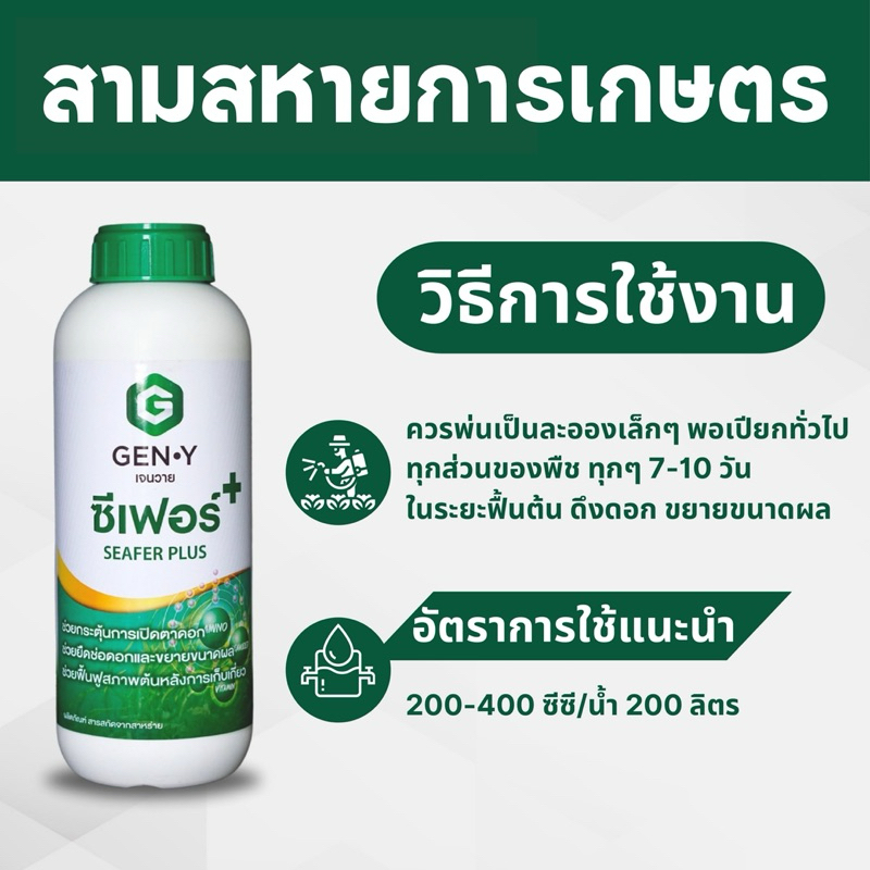 ซีเฟอร์ - สาหร่ายเขียว ช่วยเปิดตาดอก ขยายผลอ่อน ฟื้นฟูสภาพต้นหลังการเก็บเกี่ยว กระตุ้นเจริญเติบโต ขนาด1ลิตร
