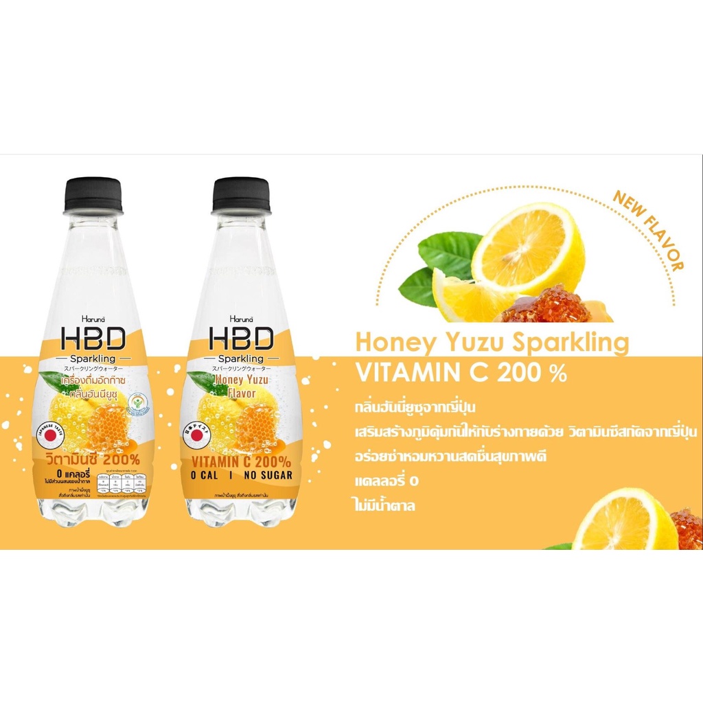 【300 ลด 20฿】HBD SPARKLING WATER NO SUGAR HONEY YUZU 330ML(18413) เครื่องดื่มอัดแก๊สไม่มีน้ำตาล กลิ่นฮันนี่ 12 ขวด