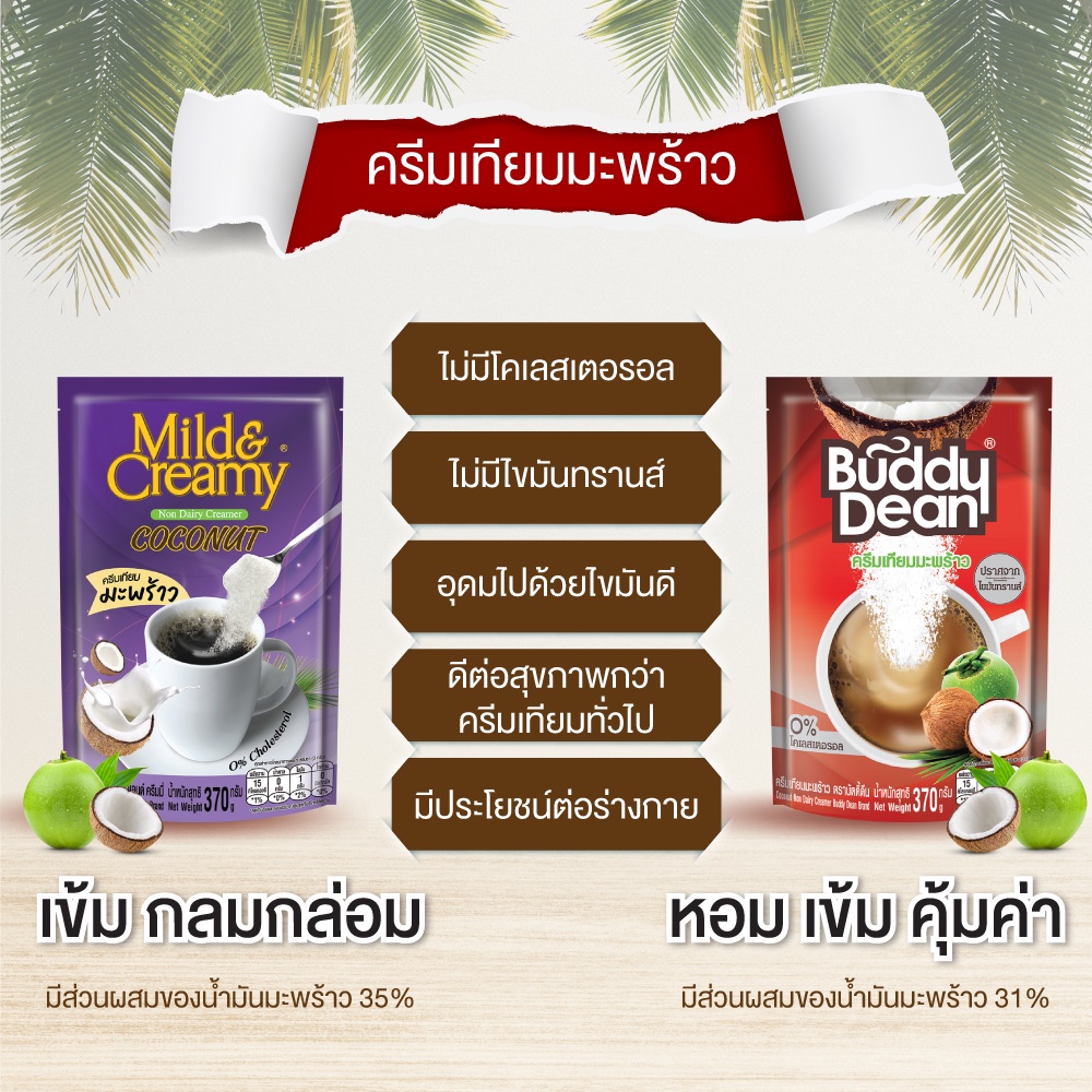 [เซ็ต 3 ถุง] ครีมเทียมมะพร้าว ตราบัดดี้ดีน รุ่น 370 กรัม