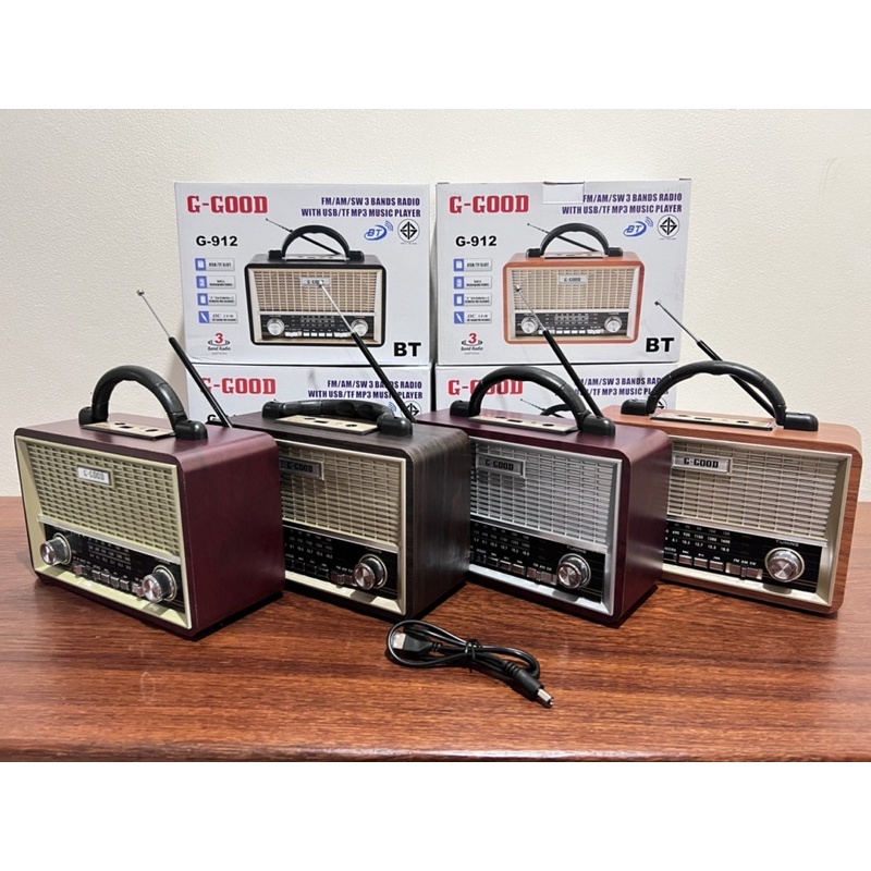 วิทยุทรงโบราณรุ่นG912BT#บลูทูธ#FM-AM#USB#TF card#ชารจ์เก็บไฟได้(ขออนุญาติสุ่มสี)