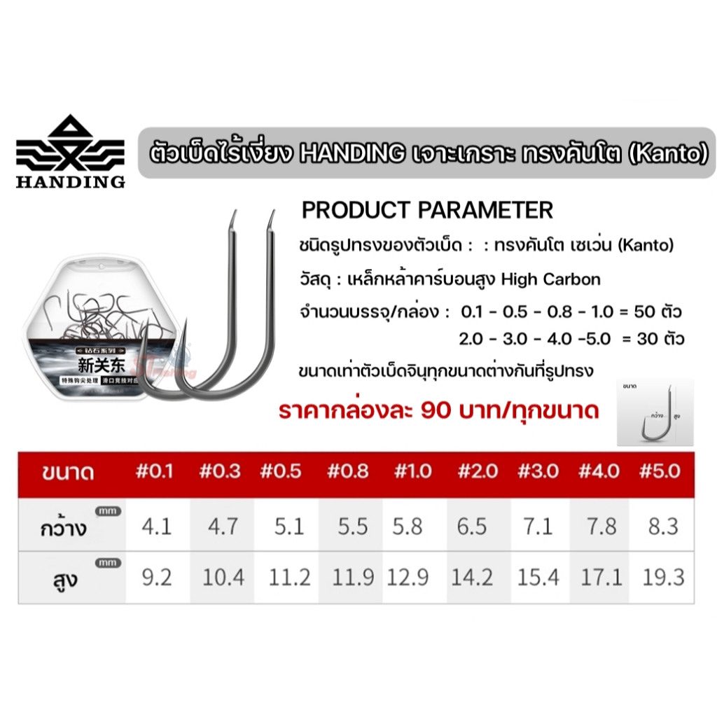ตัวเบ็ดไร้เงี่ยง Handing (ทรงคันโต เซเว่น) เหมาะสำหรับสายเจาะเกราะสายเข้าปาก แข็งแรงทนทาน