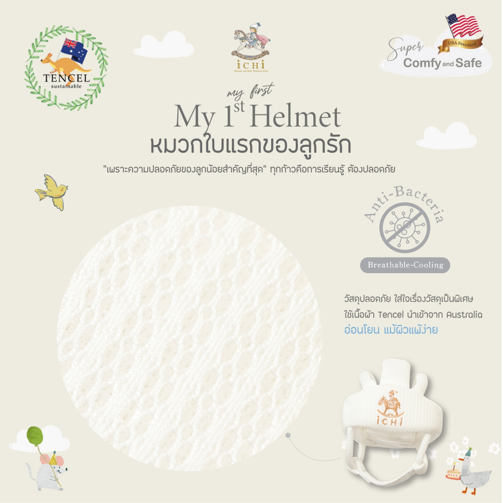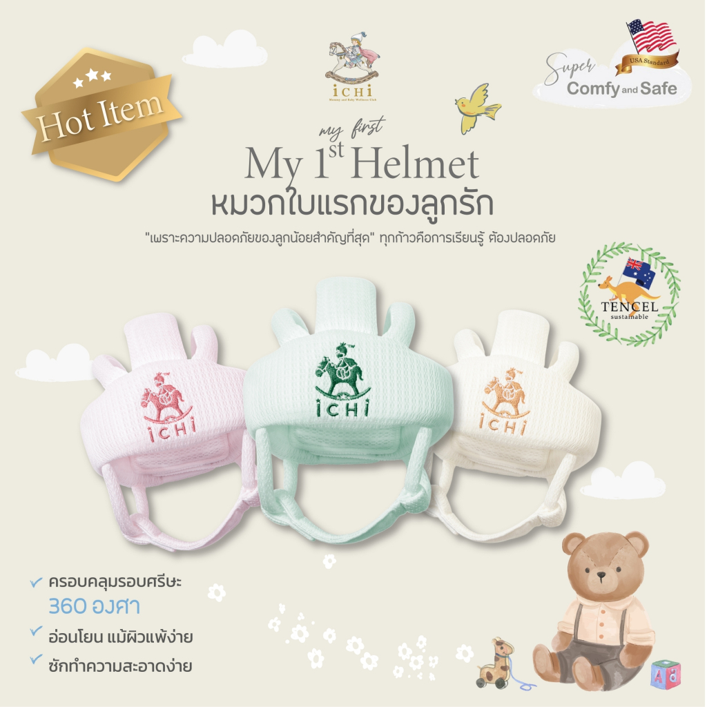 iCHi My 1st Helmet หมวกกันกระแทกเด็ก หมวกกันน็อคเด็ก วัยหัดเดิน ปรับขนาดได้ หนา 20 มม. ระบายอากาศดี