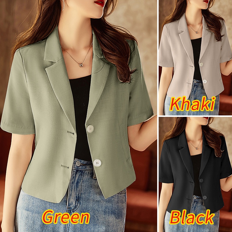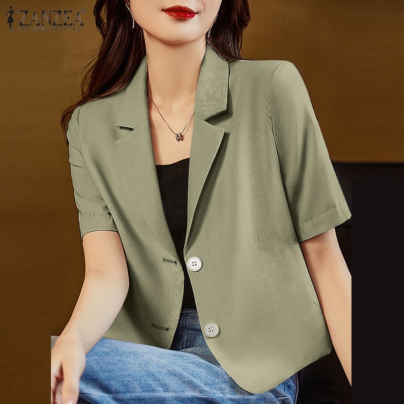 Zanzea เสื้อเบลเซอร์ คอปก แขนสั้น ลําลอง แฟชั่นสไตล์เกาหลี สําหรับผู้หญิง