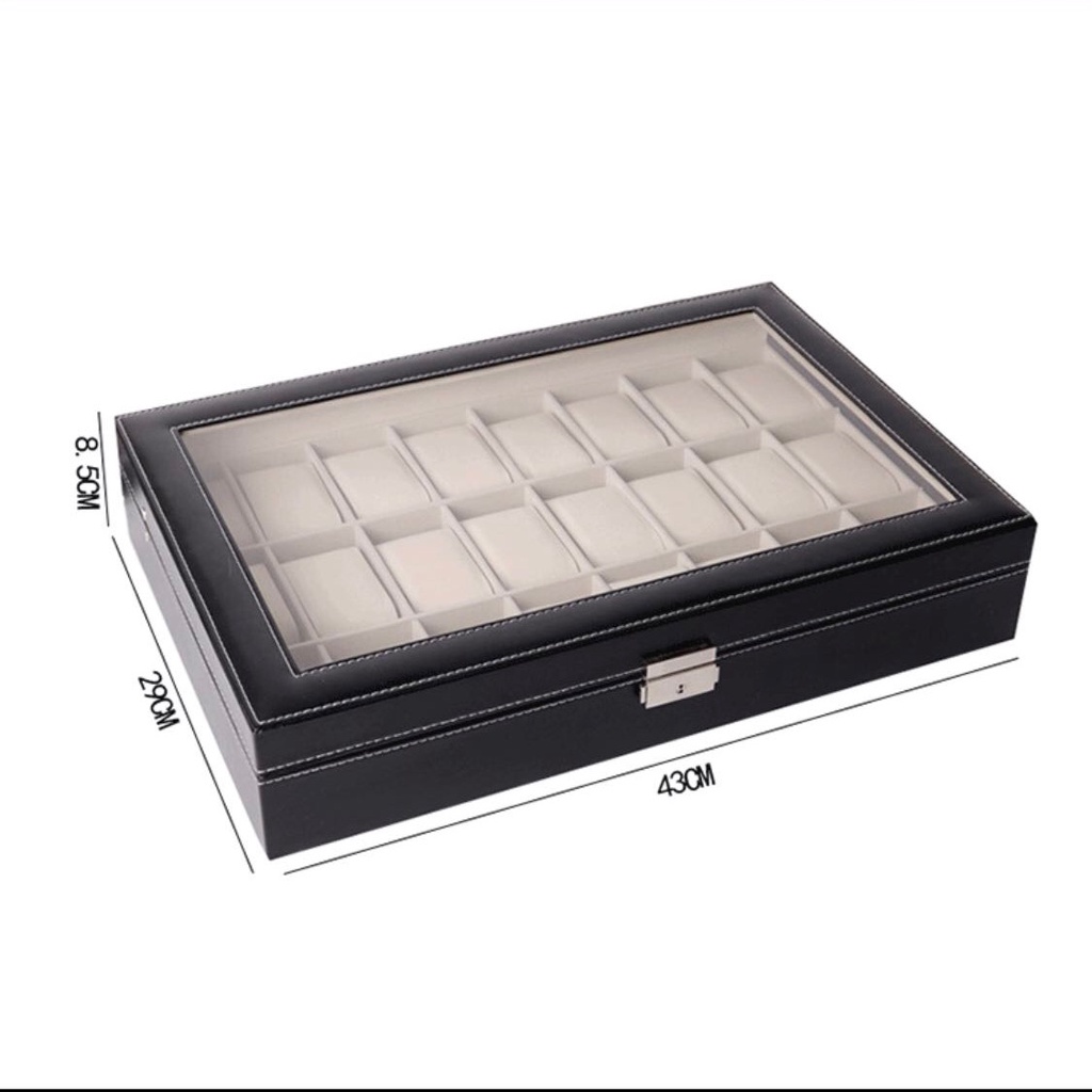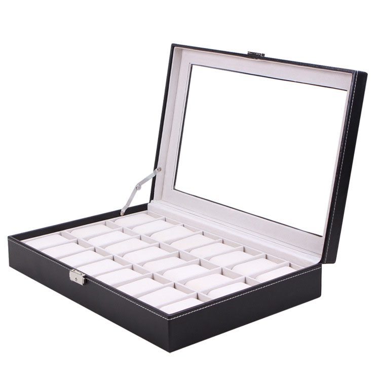 กล่องนาฬิกา 24 เรือน PUหนังสีดำคลาสสิก กล่องใส่นาฬิกา Watch Box กล่องของขวัญ