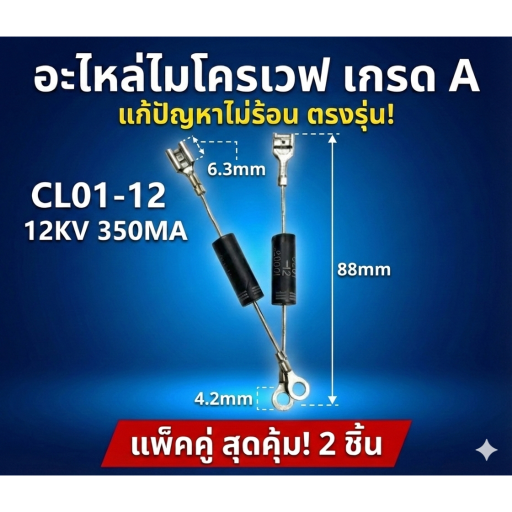 ไดโอดความถี่สูง ไดโอดไมโครเวฟ เบอร์ CL01-12 / CL04-12 (12kV) อะไหล่เตาไมโครเวฟ เกรดทนทานใช้ได้เกือบทุกยีห้อ ราคาต่อ2ชิ้น