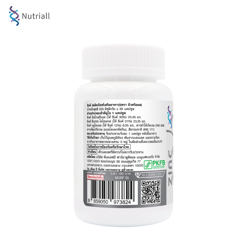 [แพ็ค 3 ขวด สุดคุ้ม] ซิงค์ นิวทริออล Zinc Nutriall ซิงค์ 15 มก. Zinc 15 mg. ซิงค์บิสไกลซิเนต ซิงค์ซิเตรท ไดไฮเดรต