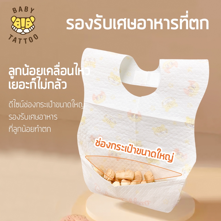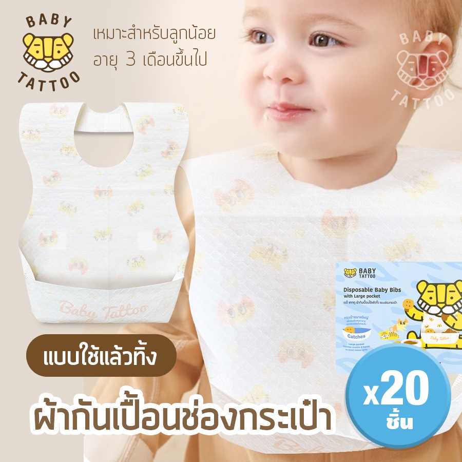 BABY TATTOO ผ้ากันเปื้อนเด็กใช้แล้วทิ้ง กันน้ำ ช่องกระเป๋าขนาดใหญ่1กล่อง20ชิ้น แบบพกพา 3 เดือนขึ้นไป