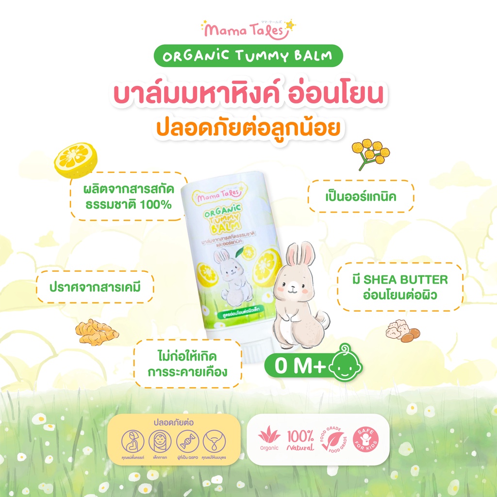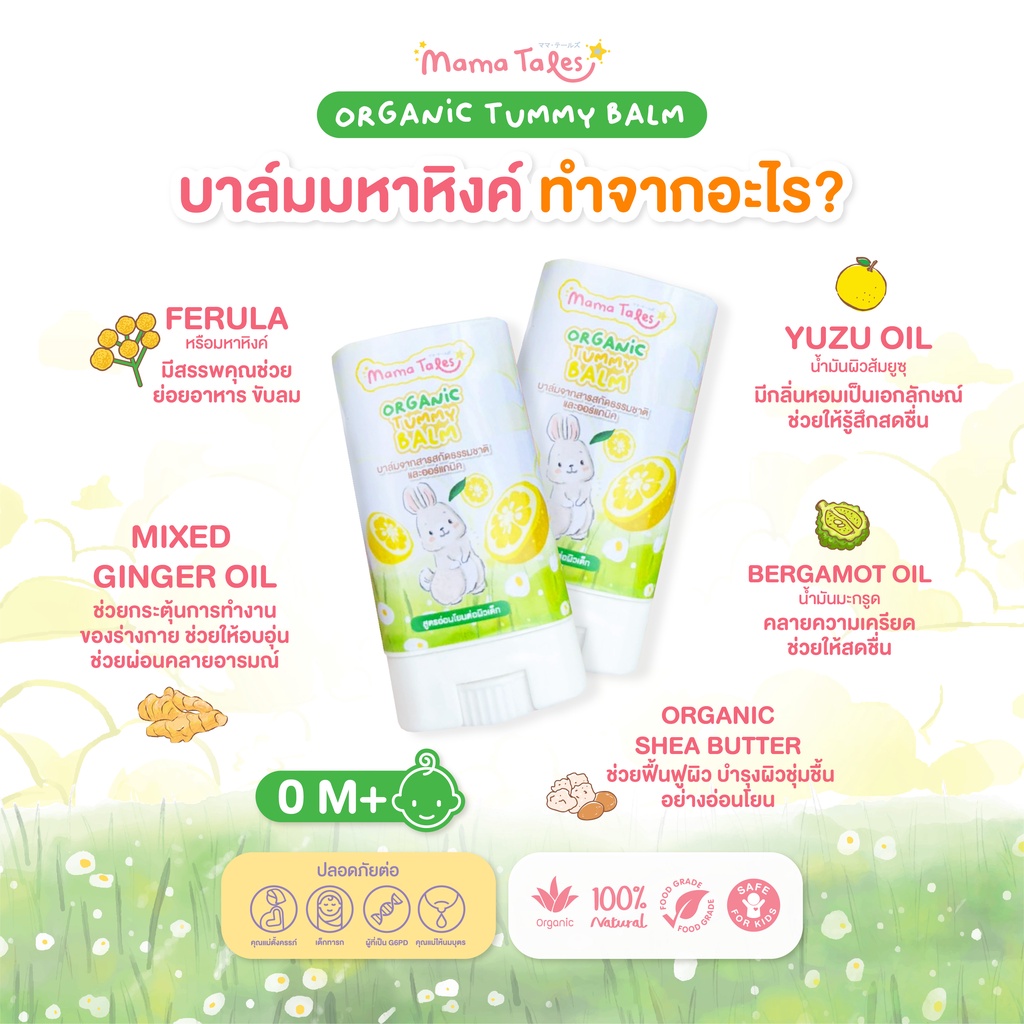Exp 03/2028 Mama Tales บาล์มมหาหิงค์ออร์แกนิค กลิ่นยูซุ ช่วยลดท้องอืดท้องเฟ้อ ช่วยขับลม ใช้ได้ตั้งแต่แรกเกิด