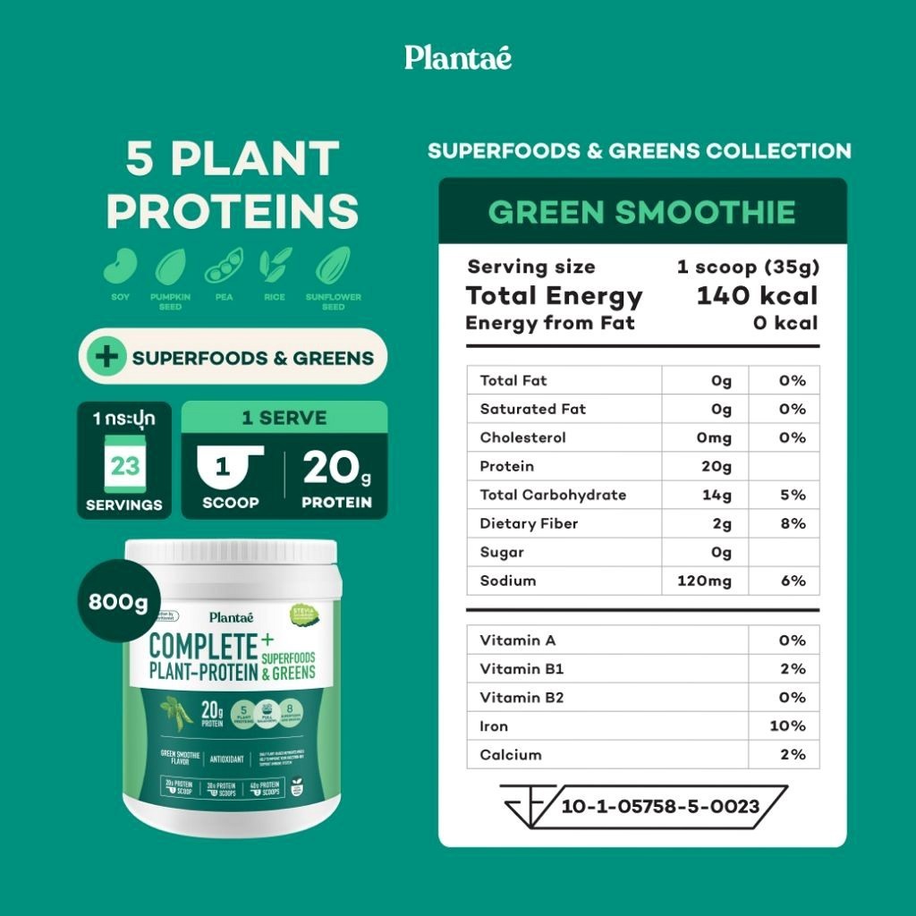 Plantae Complete Plant-Protein Superfoods & Greens รสGreen Smoothie ขนาด 800 g. (03550)