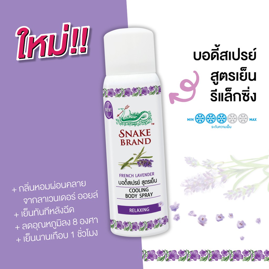 Snake Brand ตรางู คูลลิ่งบอดี้สเปรย์ รีแล็กซิ่ง ขนาด 50 มล.1 กระป๋อง+ ทิชชู่เย็นตรางู รีแล็กซิ่ง 10 ชีท 2แพ็ค.