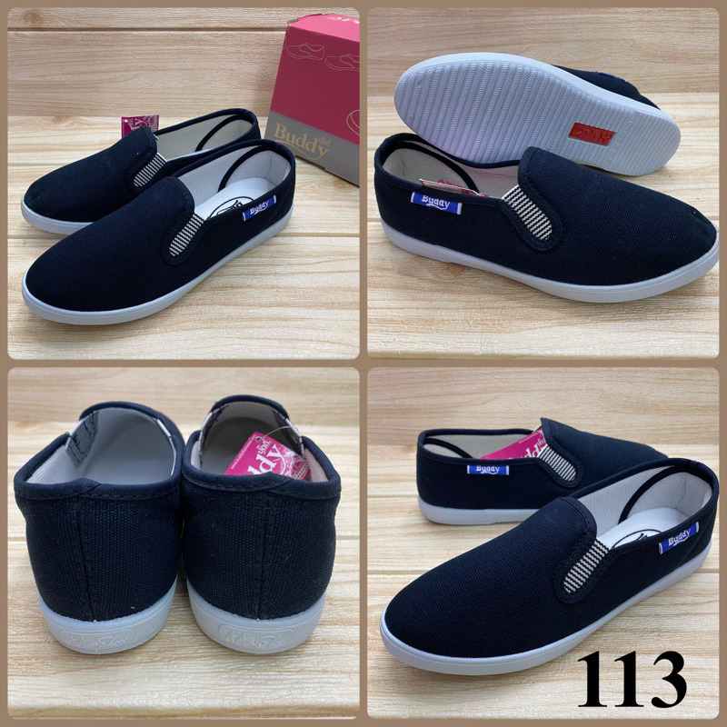 Buddy รุ่น 113 / 411 รองเท้าคัทชูผ้า (ผู้หญิง) สีขาว/ดำ/กรม/กรมล้วน ยอส hi