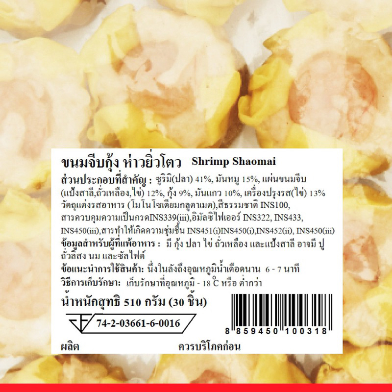 ขนมจีบกุ้ง ห่าว ยิ่ว โตว 510 กรัม (30ชิ้น) | SHRIMP DUMPLINGS