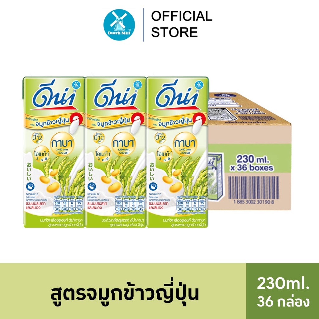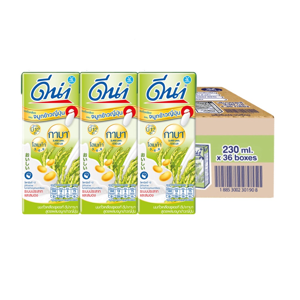 Dna (ดีน่า) นมถั่วเหลืองยูเอชที สูตรจมูกข้าวญี่ปุ่น 230 มล. x 36 กล่อง