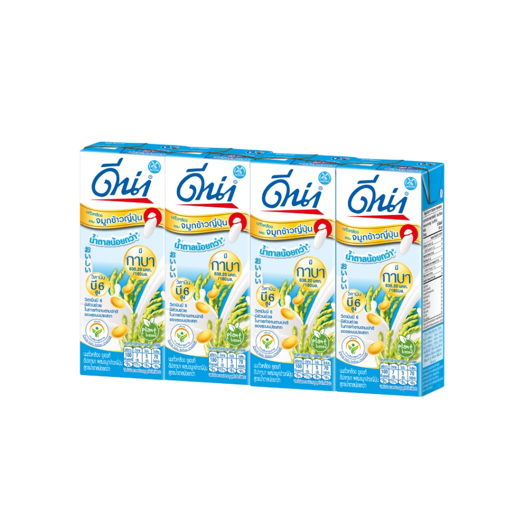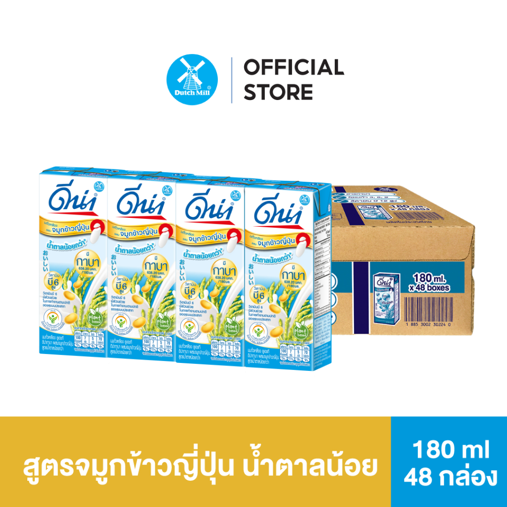 Dna ดีน่า นมถั่วเหลืองยูเอชที สูตรจมูกข้าวญี่ปุ่น น้ำตาลน้อย 180 มล. x 48 กล่อง