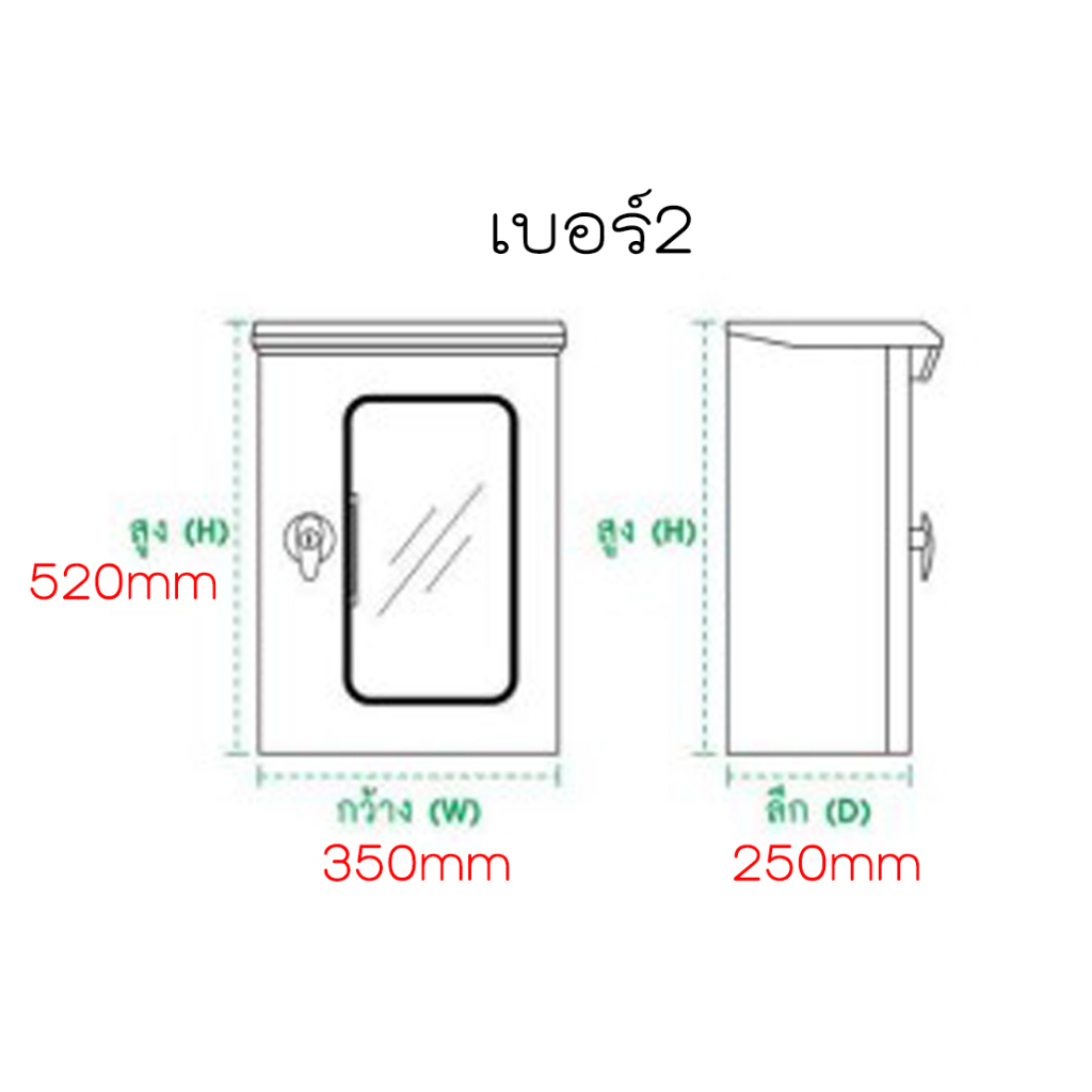 WIN ตู้กุญแจไซด์ กันน้ำ 2ชั้น ตู้เหล็กกันน้ำ เบอร์2 350x520x250mm สวิตช์บอร์ด คอนโทรล ฝากระจก