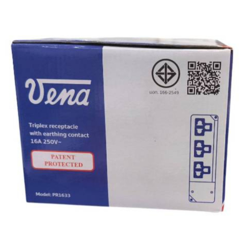 vena เต้ารับไฟฟ้า ปลั๊กตัวเมีย 3 ที่ หยิบยกได้ ปลั๊กลอย ปลั๊กกราวด์ลอย มีขั้วดิน มอก รุ่น PR1633 รองรับ 16A 250V 3PIN Tr