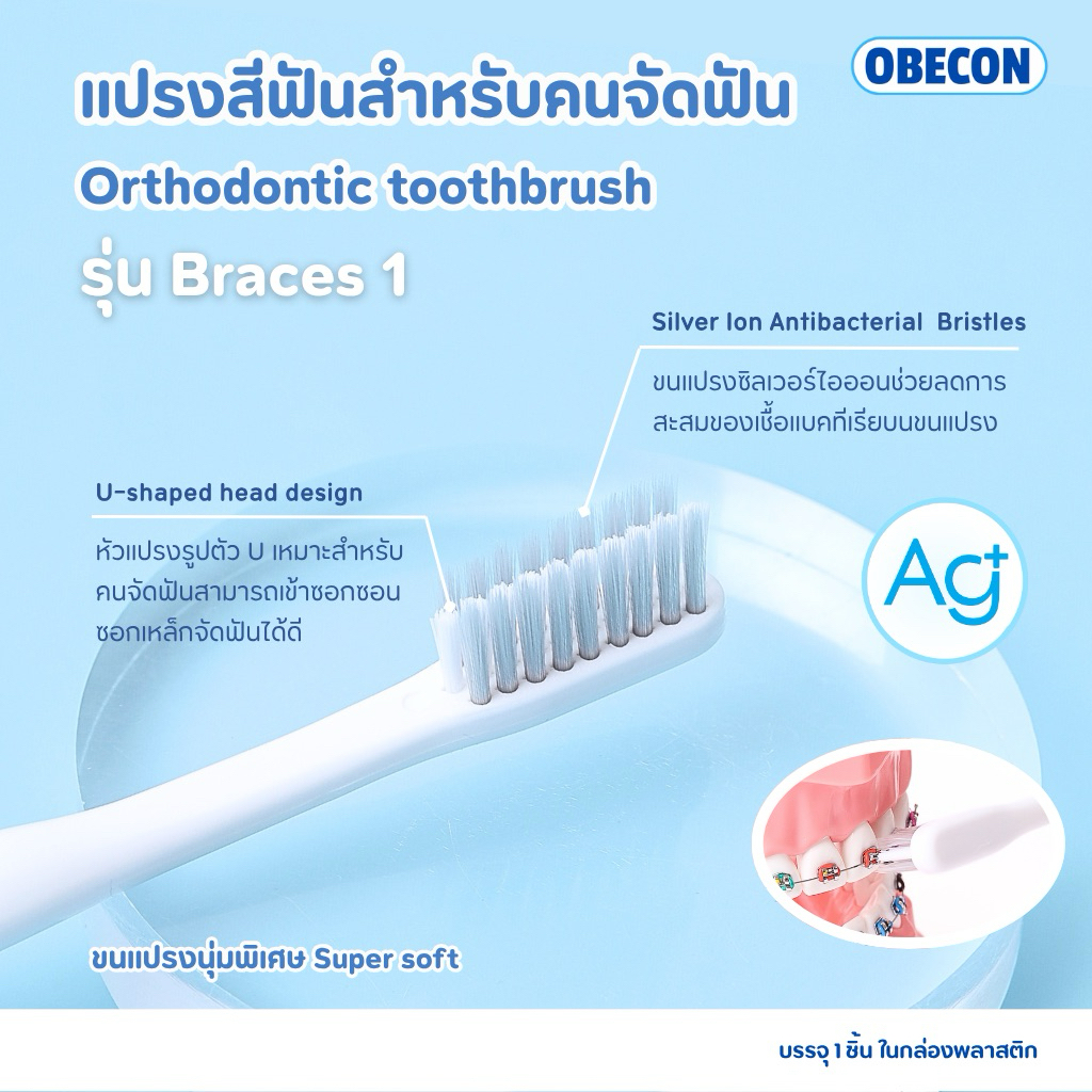 OBECON แปรงสีฟัน สำหรับคนจัดฟัน w สีขาว 1 ด้าม ขนแปรงนุ่ม