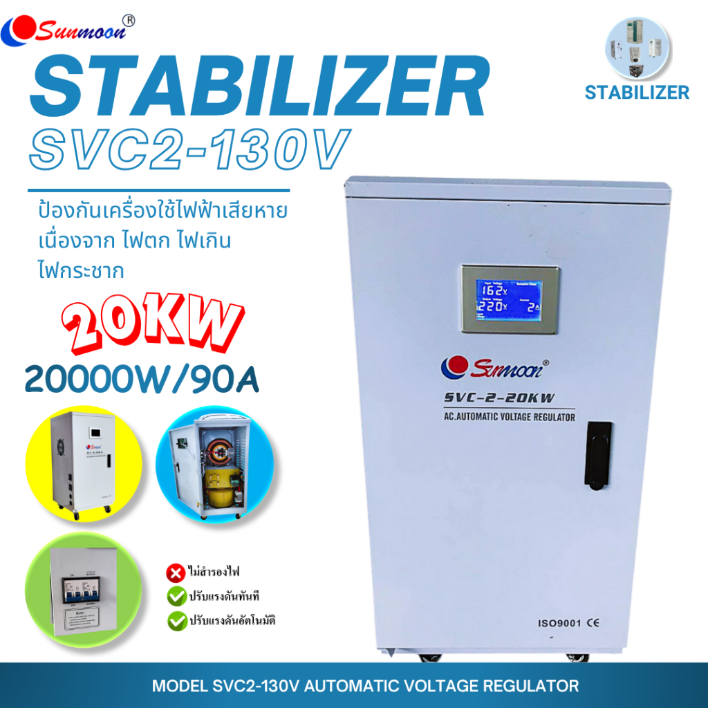 SUNMOON SVC2 20KW/20000W/90A เครื่องปรับแรงดันไฟฟ้าอัตโนมัติ กันไฟตกไฟเกิน ปรับแรงดันไฟฟ้า