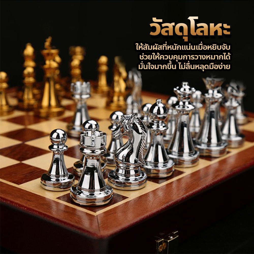 poodoo หมากรุกสากล โลหะ กระดานหมากรุก สวยงาม สไตล์วินเทจ