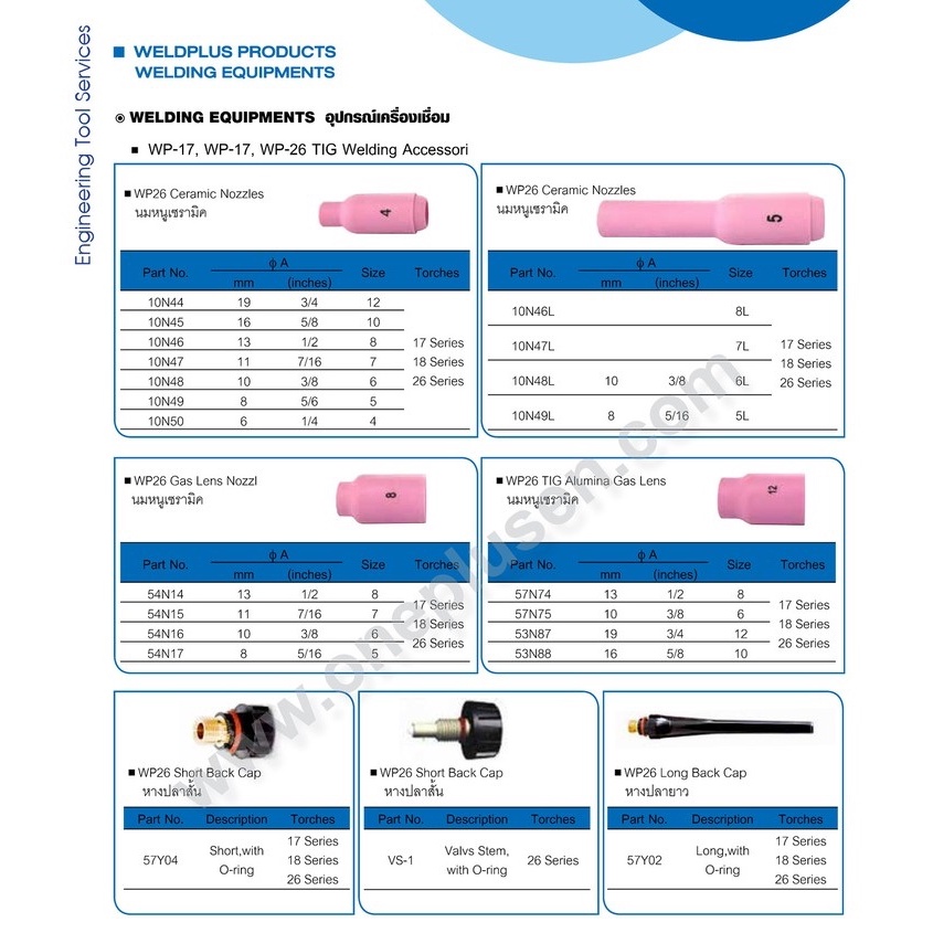 หางปลาสั้น หางปลายาว หางปลาเชื่อมอาร์กอน WP-26 Short Back Cap / Long Back Cap ยี่ห้อ WELDPLUS