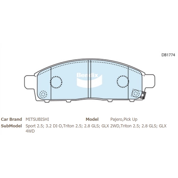 ผ้าเบรคหน้า MITSUBISHI TRITON 2WD /05-14 /15- TRITON 4WD /05-14 PAJERO SPORT /08-14 PRIMA พรีม่า PDB1774