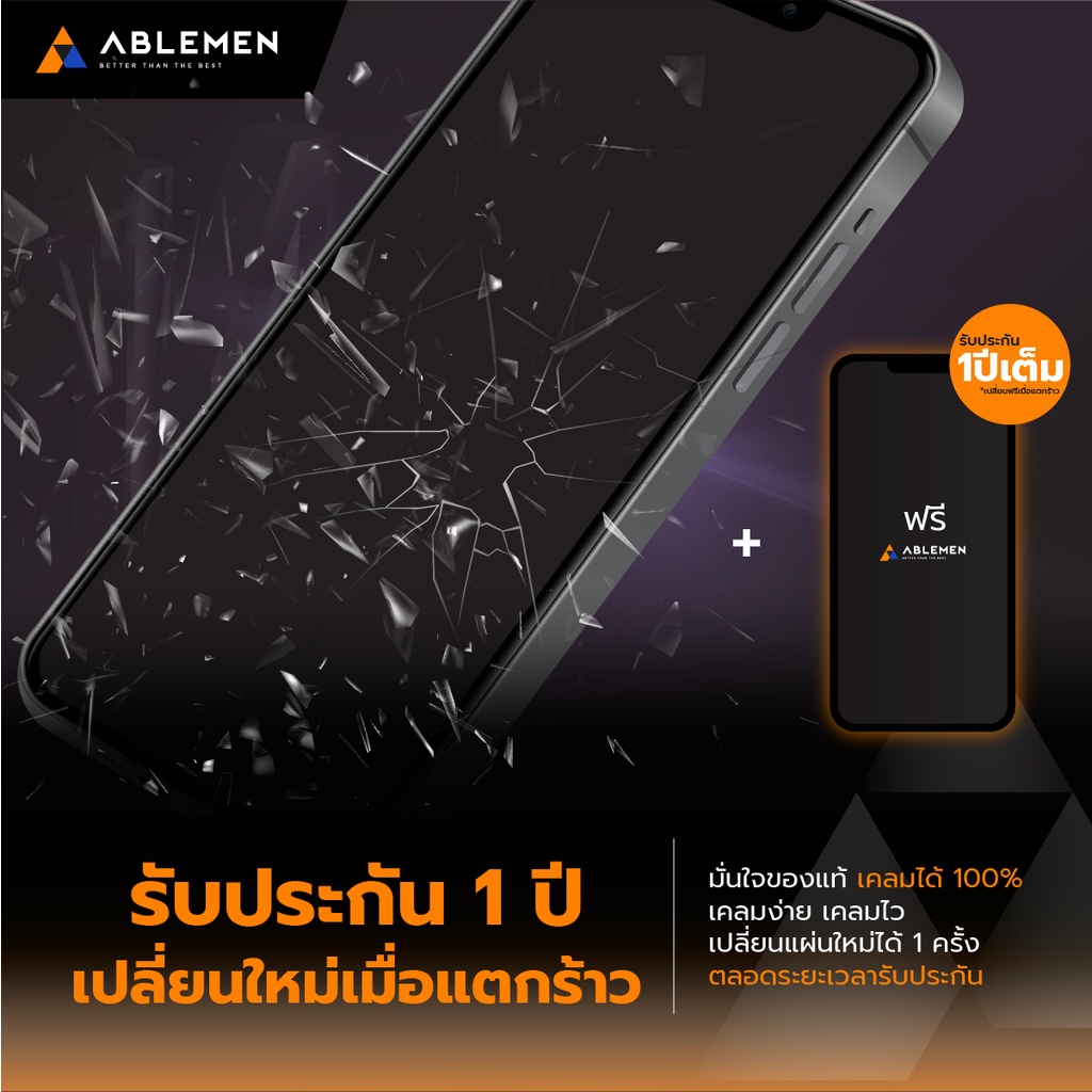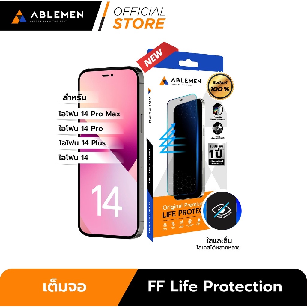 [Official] Ablemen ไอโฟน 14 Series - กระจก FF Blue Light Cut กระจกใสเต็มจอ ตัดแสงสีฟ้า ถนอมสายตา รับประกัน 1 ปี