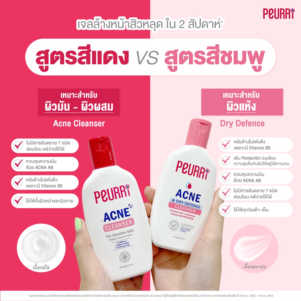 PEURRi Acne & Dry Defence Cleanser 100ml เจลล้างหน้าสูตรอ่อนโยน