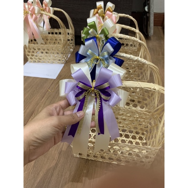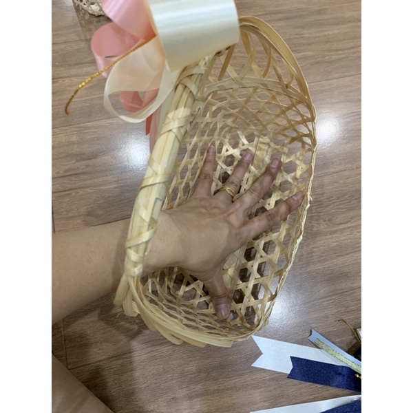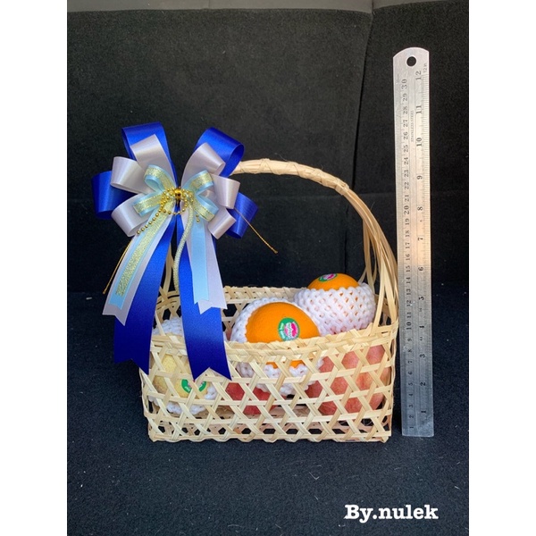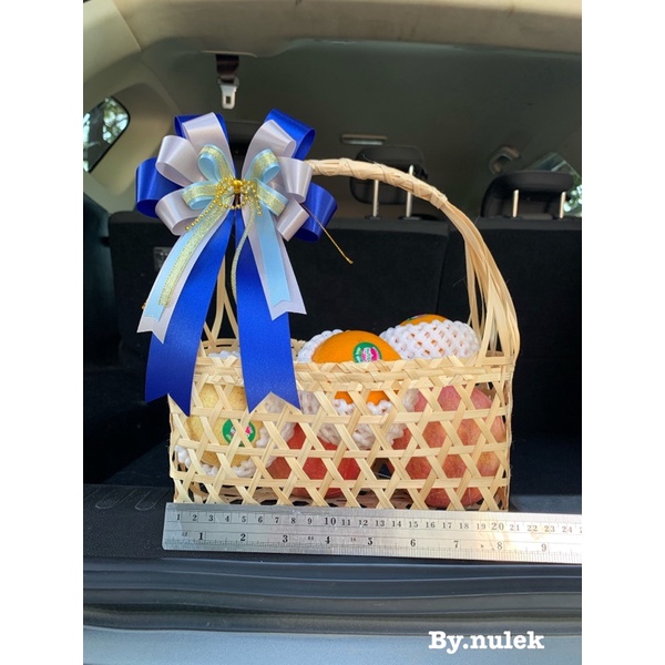 กระเช้าผลไม้ ตะกร้า กิ๊ฟเซ็ท ชะลอมสานไม้ไผ่ +โบใหญ่ๆฟูๆ