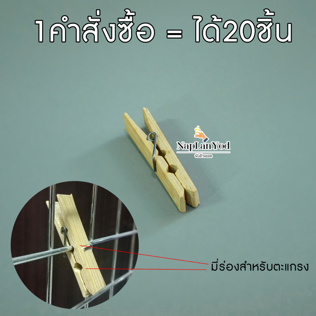 ไม้หนีบ (ยาว 6 c.m.) คลิปไม้ ตัวหนีบ แพ็ค 20 ตัว
