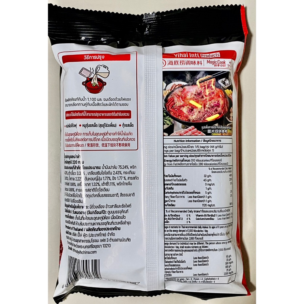 10 ถุง น้ำซุปชาบูรสหม่าล่า HaiDilao 220 g หม่าล่าสไตล์เสฉวนสูตรเฉพาะของไหตี่เลา ได้รับ อย. ไทย