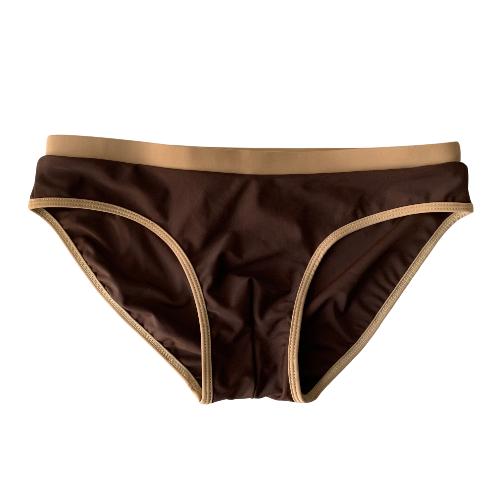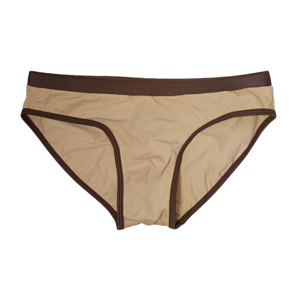 กางเกงว่ายน้ำผู้ชาย แบรนด์ NEAT รุ่นเบสิค สีเนื้อ สีน้ำตาล มีขอบ เชือกรัด ซับในด้านหน้า