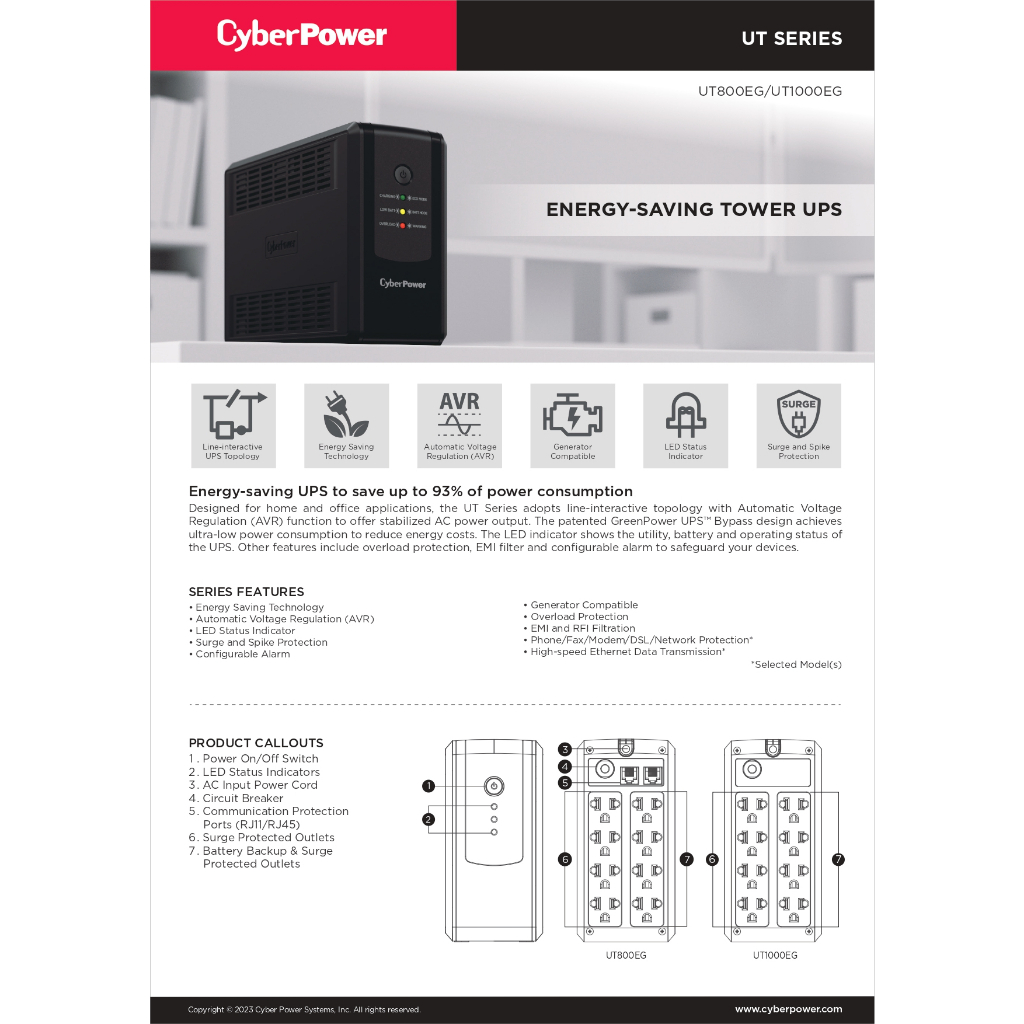CYBERPOWER UPS เครื่องสำรองไฟ รุ่น UT650EG - UT800EG - UT1000EGLCD - UT1500EG - UT2200EG