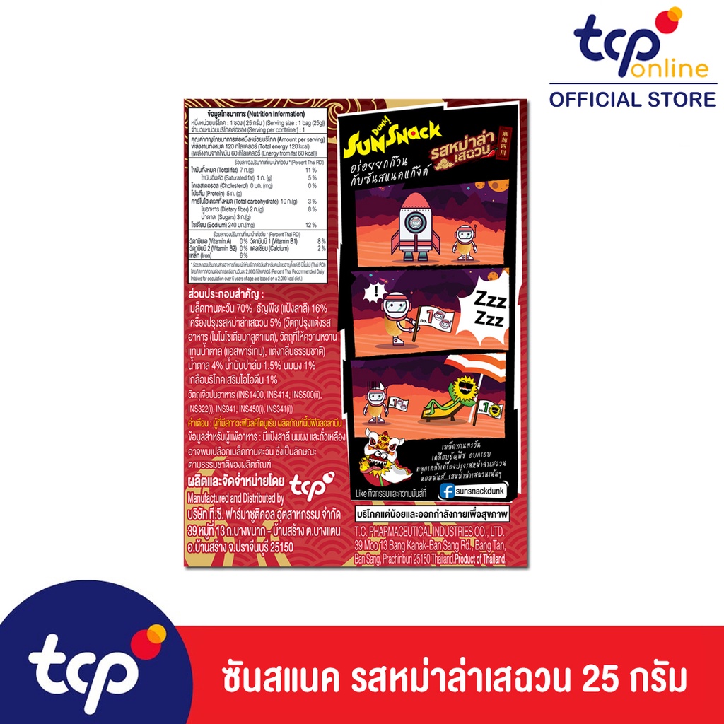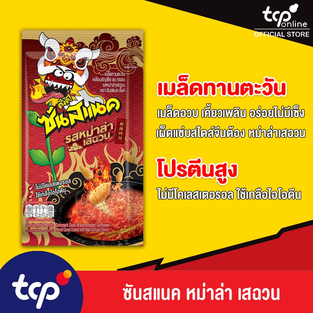ซันสแนค รสหม่าล่าเสฉวน 25 กรัม 3 แพ็ค (18 ซอง) ยกแพ็ค Sunsnack Mala Sichuan 25 g. Pack 18 (TCP) เมล็ดทานตะวัน อบ กรอบ