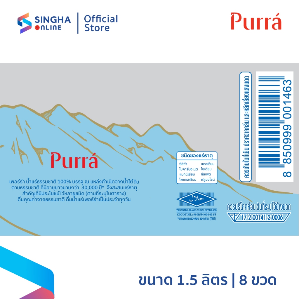 [ส่งในกทม.และปริมณฑล อยุธยา เชียงใหม่ ลำพูน] Purra Mineral Water น้ำแร่เพอร์ร่า 1.5 ลิตร 8 ขวด (15 แพ็ค รวม 120 ขวด)