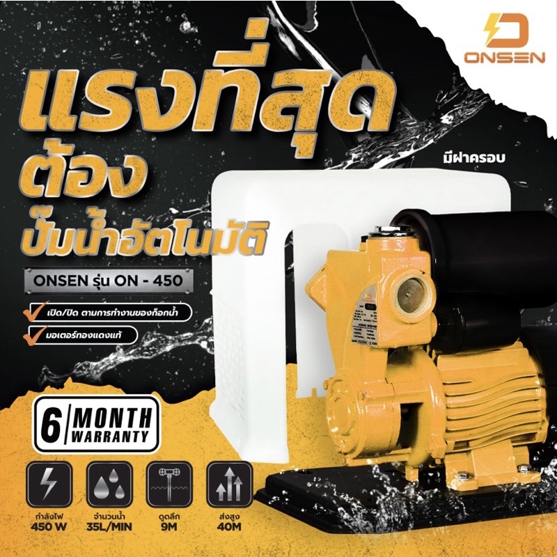 ปั๊มน้ำอัตโนมัติ รุ่นฝาครอบ แบรนด์ Onsen รุ่น ON-450 / ปั๊มน้ำอัตโนมัติ Onsen รุ่น ON-400