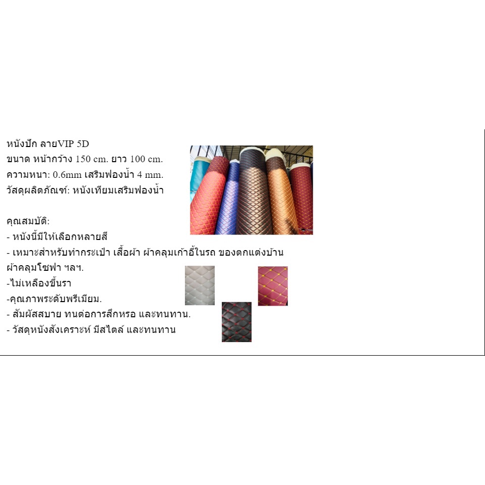 หนังปักลายVIP 5D ลายแลมโบนี้มีให้เลือกหลายสีกว้าง 1.37 เมตร ความยาวเลือกได้หากสั่ง 2ชิ้นขึ้นไปตัดยาว