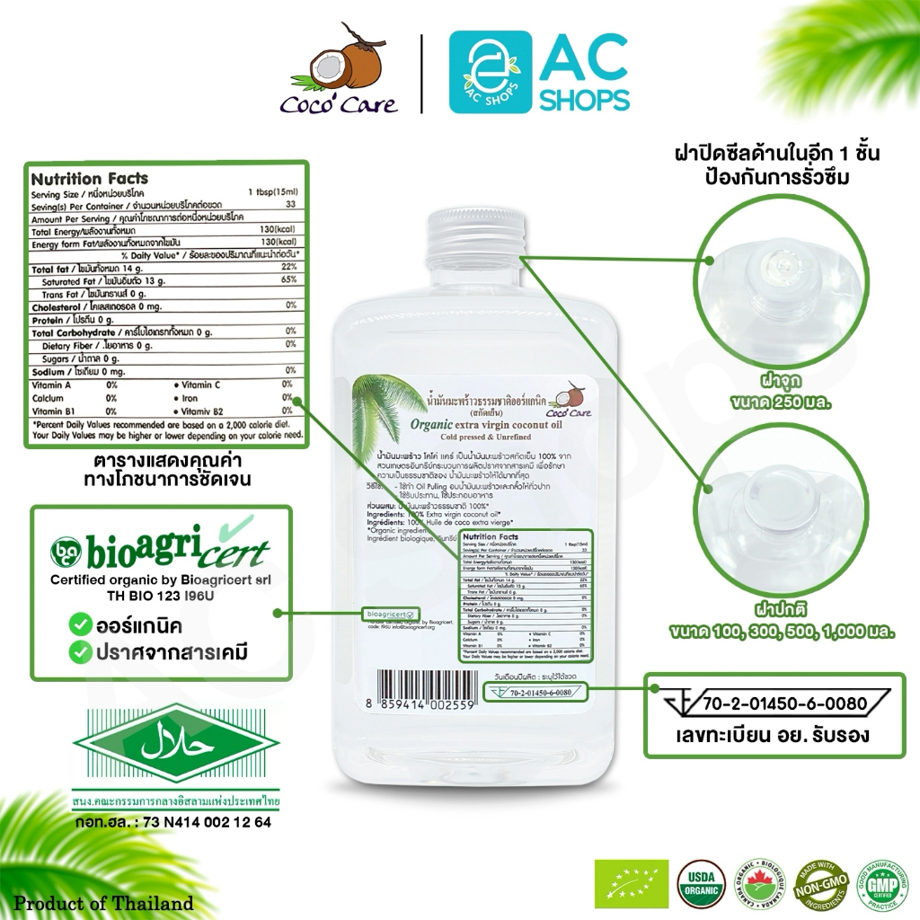 Organic น้ำมันมะพร้าวสกัดเย็นออร์แกนิค 1,000 ml. แถม ยาสีฟัน ตรา โคโค่ แคร์ - Coco' Care Extra Virgin Coconut Oil