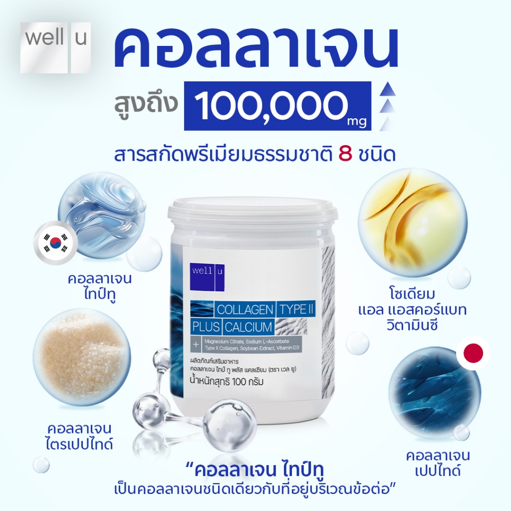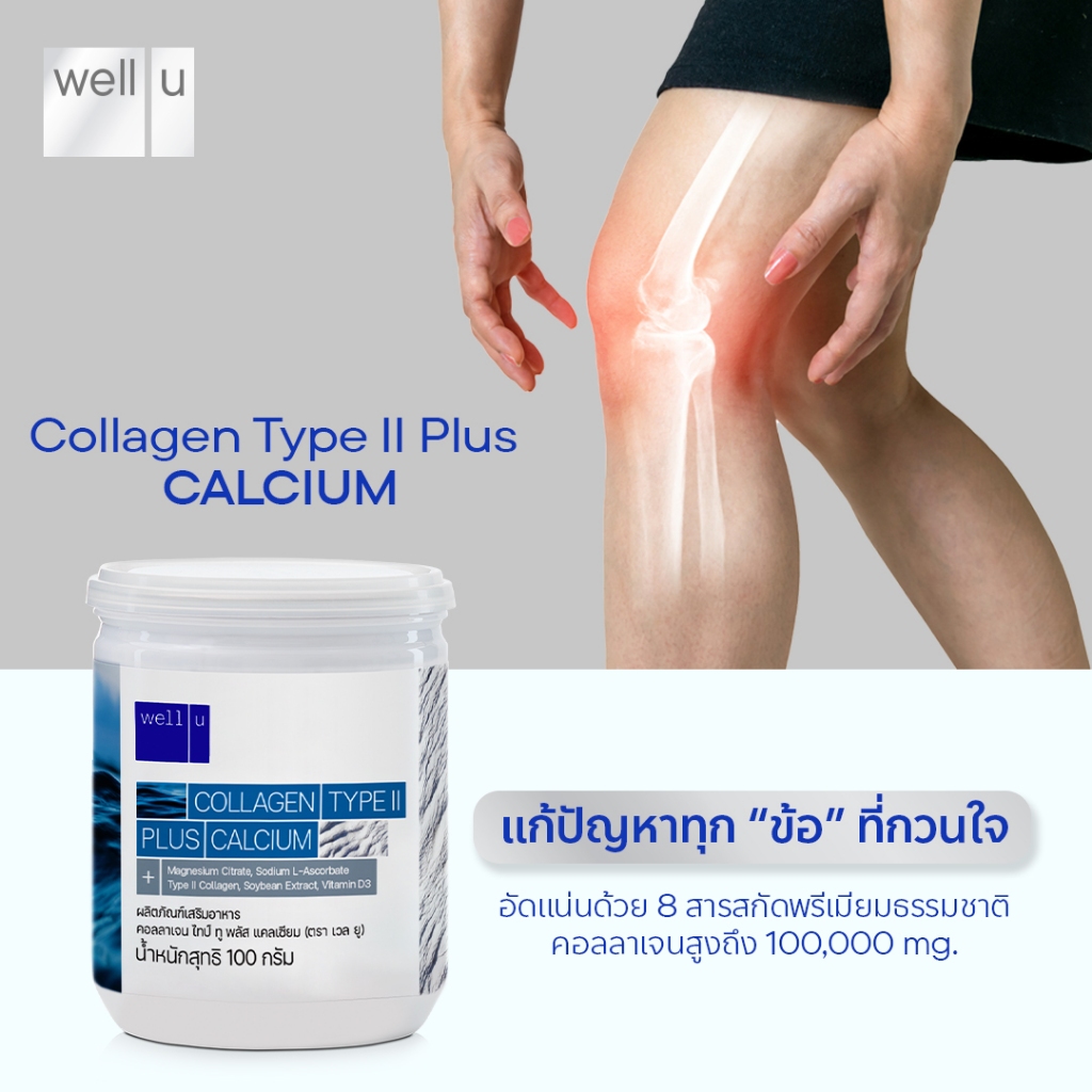 well u Collagen Type ll Plus calcium [7กระปุก]คอลลาเจน ไทป์ทู พลัส แคลเซียม ผิวและข้อเข่าดี บำรุงกระดูก 105,000 mg.