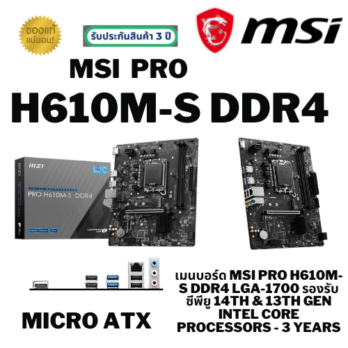 ⚡️🔥ขายดีส่งไว🔥⚡️(เมนบอร์ด) MSI PRO H610M-S DDR4 LGA 1700 รองรับซีพียู 14th & 13th Gen Intel