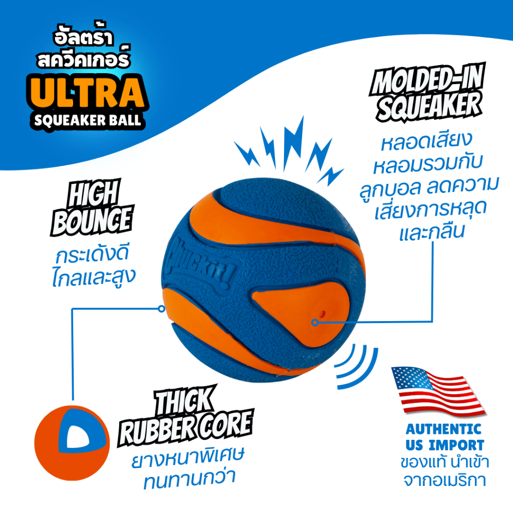 Chuckit! ULTRA SQUEAKER BALL Dog Toy It floats! Launcher compatible, High bounce, Bright colors