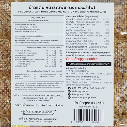 ทองอำไพ ข้าวแต๋น หน้าธัญพืช 180 กรัม