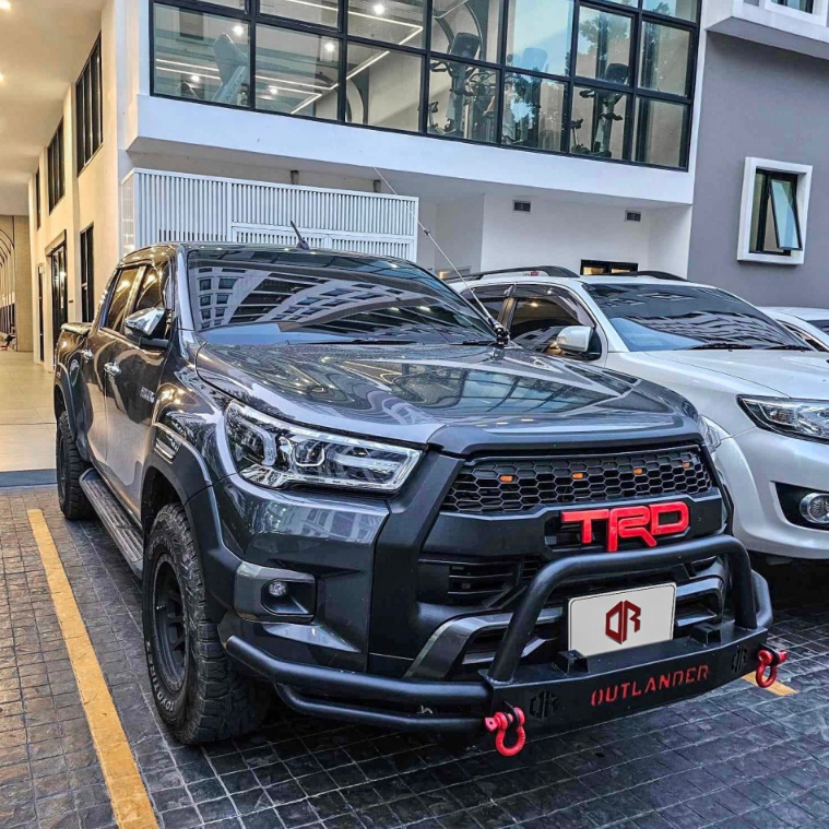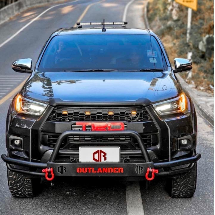 กันชนเหล็กเสริมร็อคกี้ TOYOTA REVO ( Rocky Front bumper ) พร้อมห่วงสีแดงโอเมก้า 1 คู่ **พร้อมอุปกรณ์น็อตติดตั้งได้เลย**แ